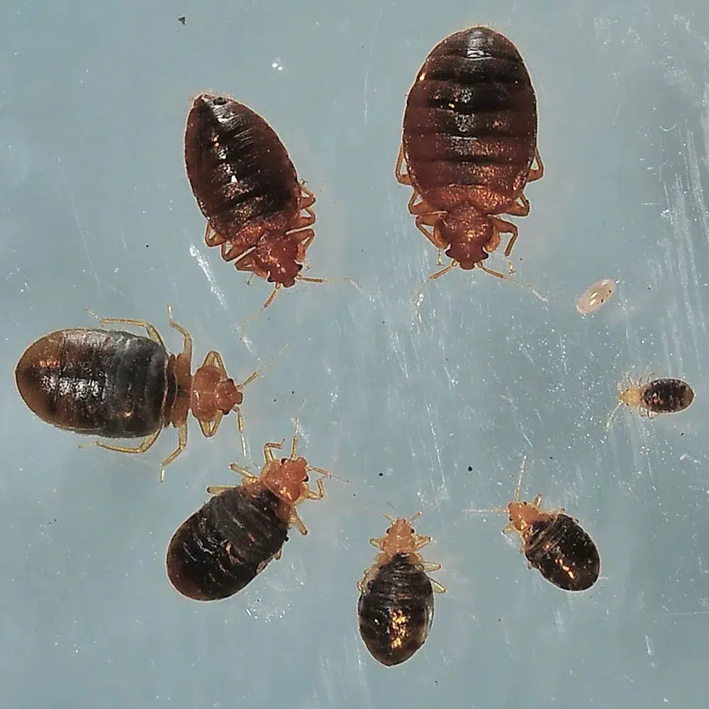 « Désinfection de la punaise de lit (ou Cimex lectularius) figure parmi les plus anciens parasites de l’homme. C’est un petit insecte de la taille d’un pépin de pomme, qui a un corps de forme ovale. Brun et sans aile, un adulte à jeun mesure environ 5 à 7 mm de long. Apres s’être nourri, il grossit légèrement et prend une teinte rouge sang foncé… »